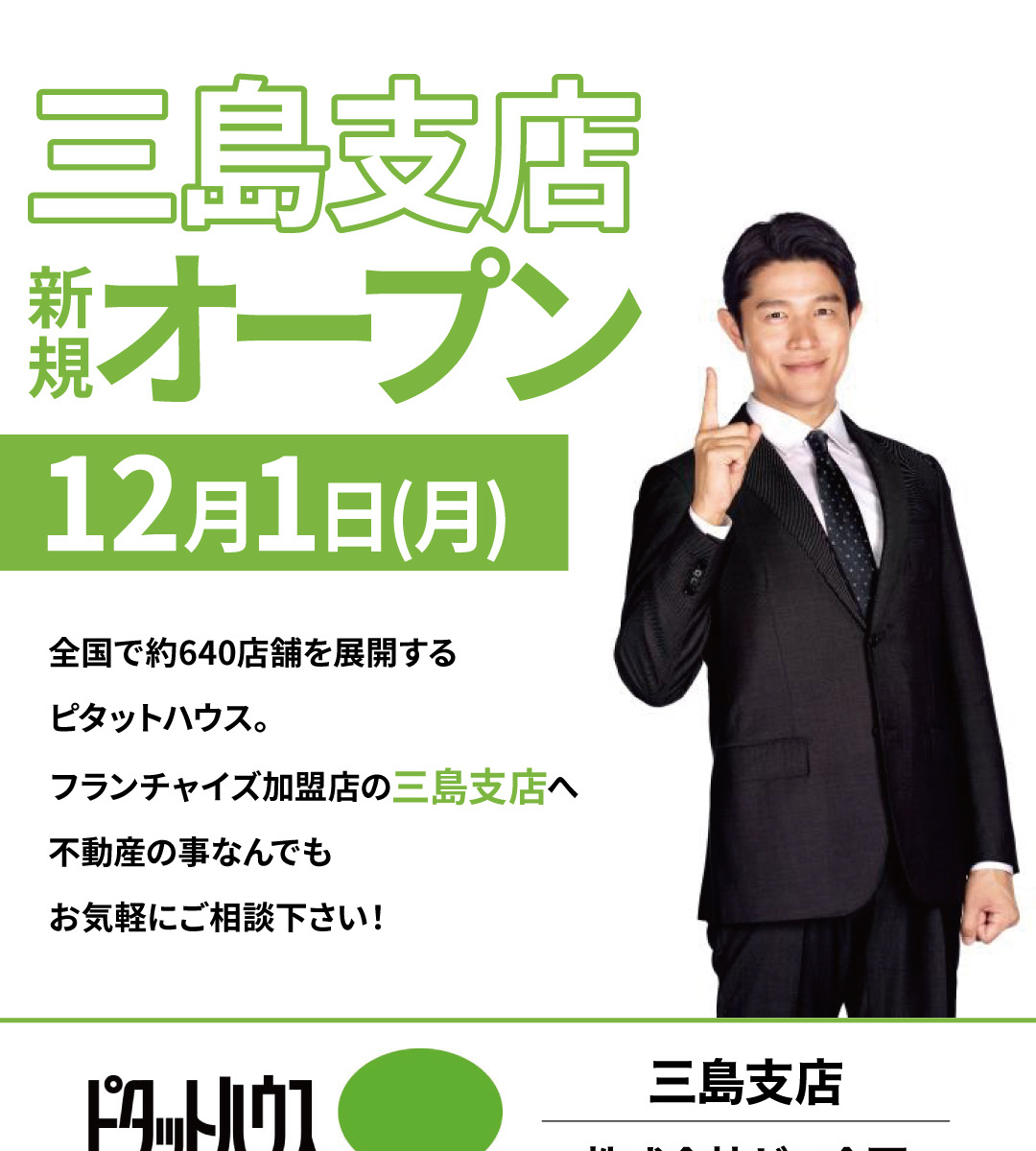 12/1三島店新規オープンのお知らせ – 静岡市の不動産のことならピタットハウス – ゼロ企画静岡店